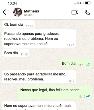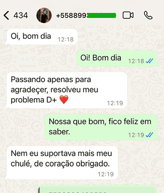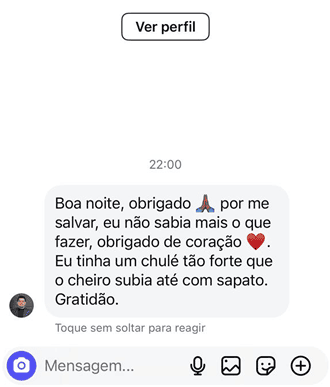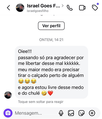 Após 3 anos de desenvolvimento, meu método já ajudou pessoas de todo o Brasil a resolver casos extremos de chulé, trazendo resultados rápidos e eficazes para meus clientes. Conquistei a autoestima de dezenas de pessoas que já haviam perdido a esperança. Um método simples e eficaz, resultado de anos de experiência como podóloga em Belo Horizonte (BH).