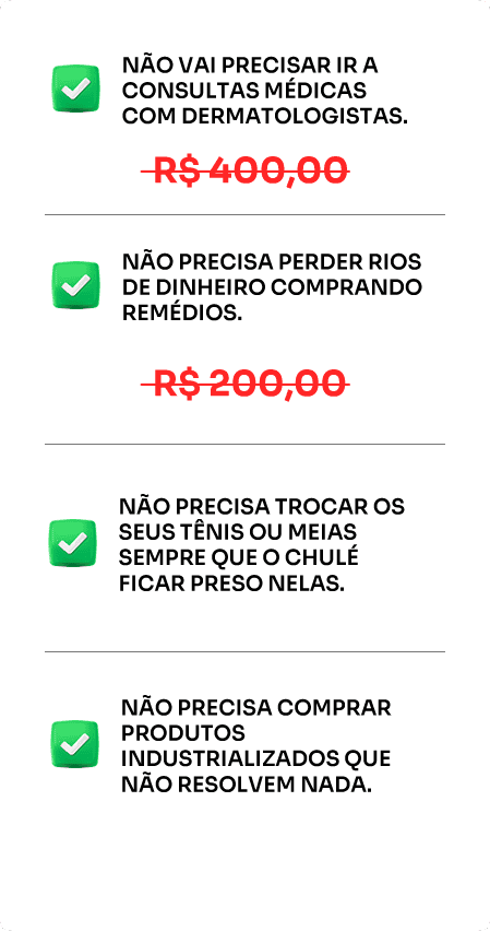 Sim, o Protocolo sem Chulé em 48h funciona para qualquer pessoa que esteja com Chulé, não importa o nível. É necessário apenas seguir as instruções e colocar em prática nosso Protocolo.